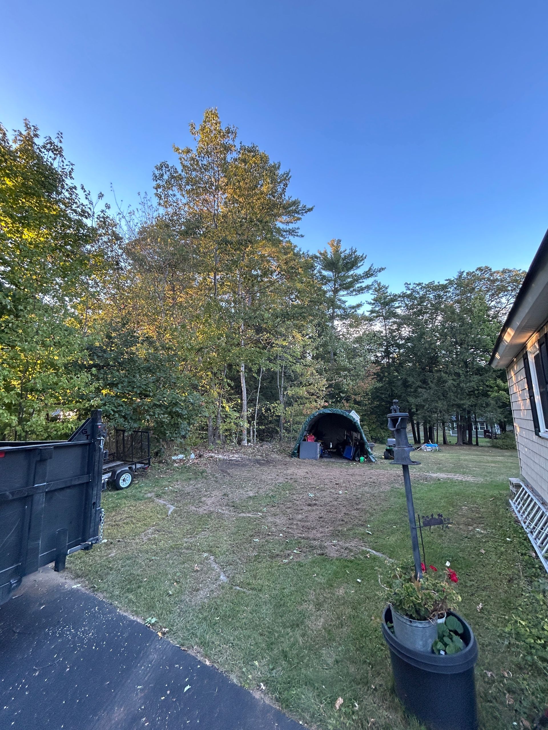Includes hazard tree removal with efficient handling and property protection throughout the project.